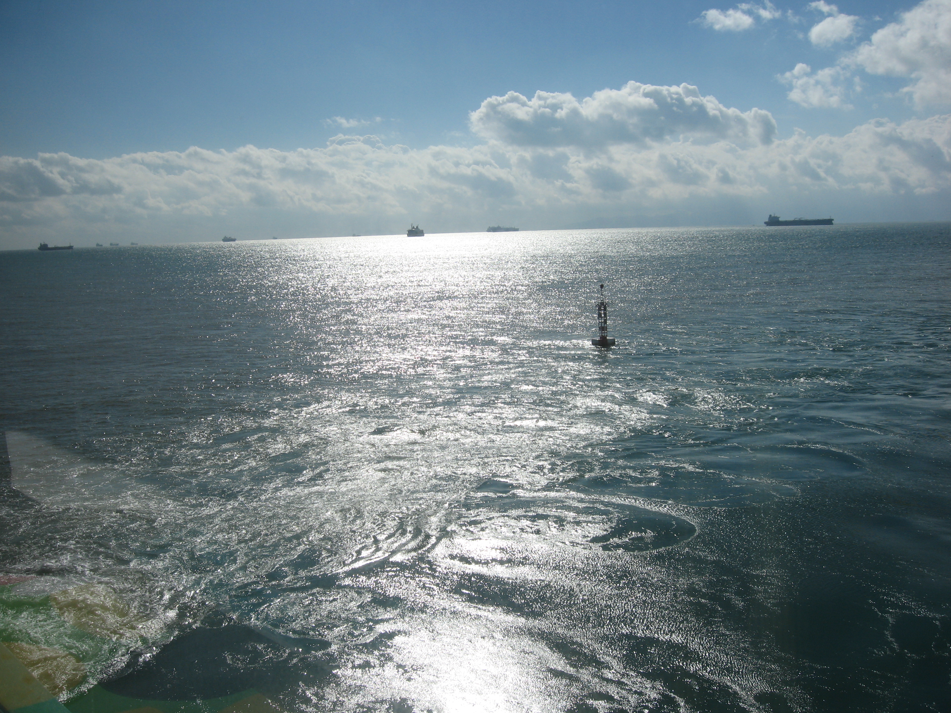 Lever à 6h sous une pluie battante pour embarquer sur le ferry de 9H. Nous sommes bien placés dans la file. L’embarquement commence à 8H pour…stopper à 8H30 alors que très peu de véhicules sont à bord. On attend ! Des gens en gilets jaunes, talkies à l’oreille s’agitent puis…plus rien. Plus rien ne bouge ! C’est quoi ce bazar ???