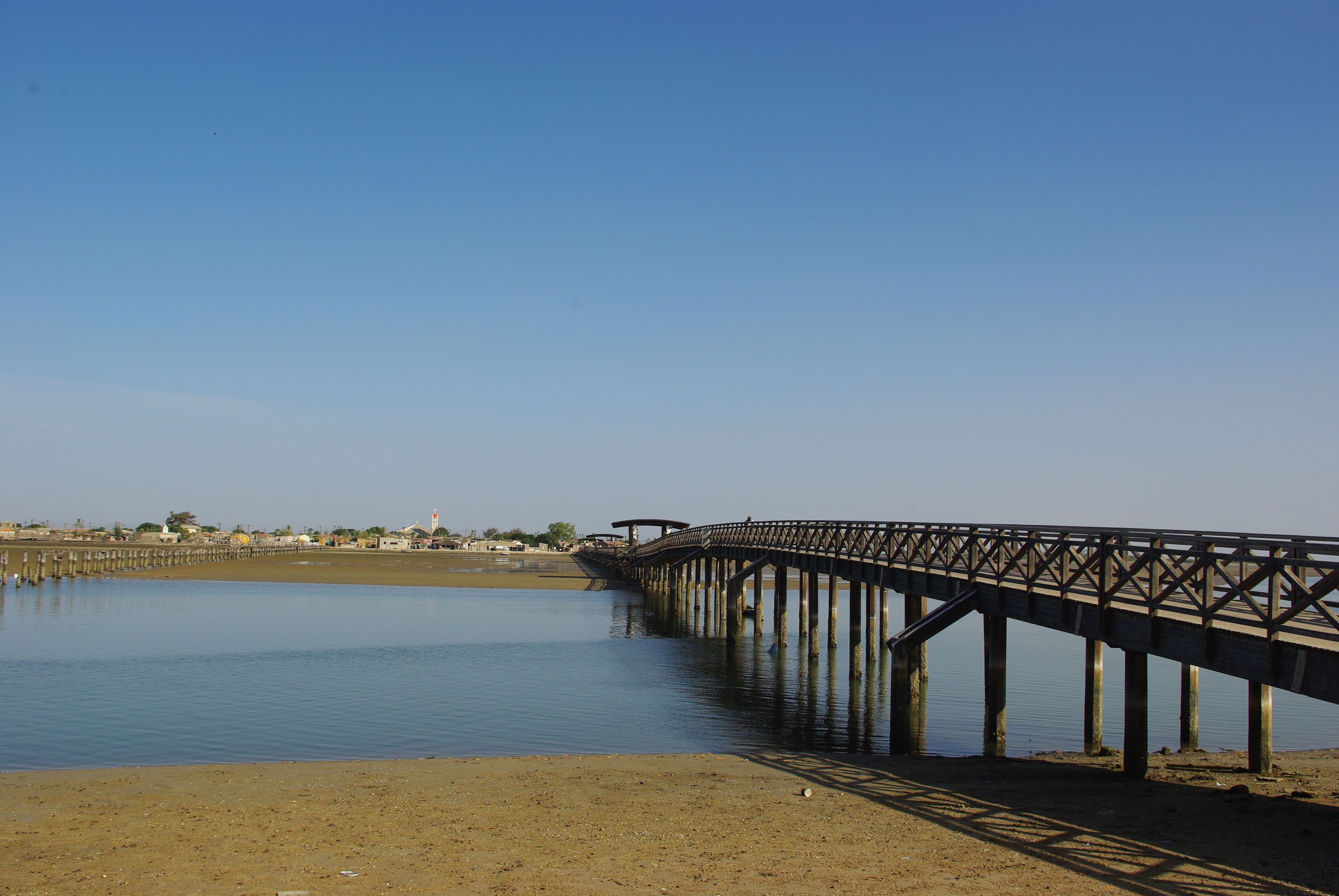 Le Noir nous propose de demander à sa soeur, propriétaire d’une maison d’hôtes, si elle nous accorde l’hospitalité pour la nuit. Négociation du prix…Affaire conclue…Le gardien est payé tout de suite. Il nous installe le long d’une maison. Nous partons à pied pour l‘Ile de Fadiouth reliée par une passerelle en bois de plus de 500 m de long à Joal, ville native de Léopold Sédar Senghor.