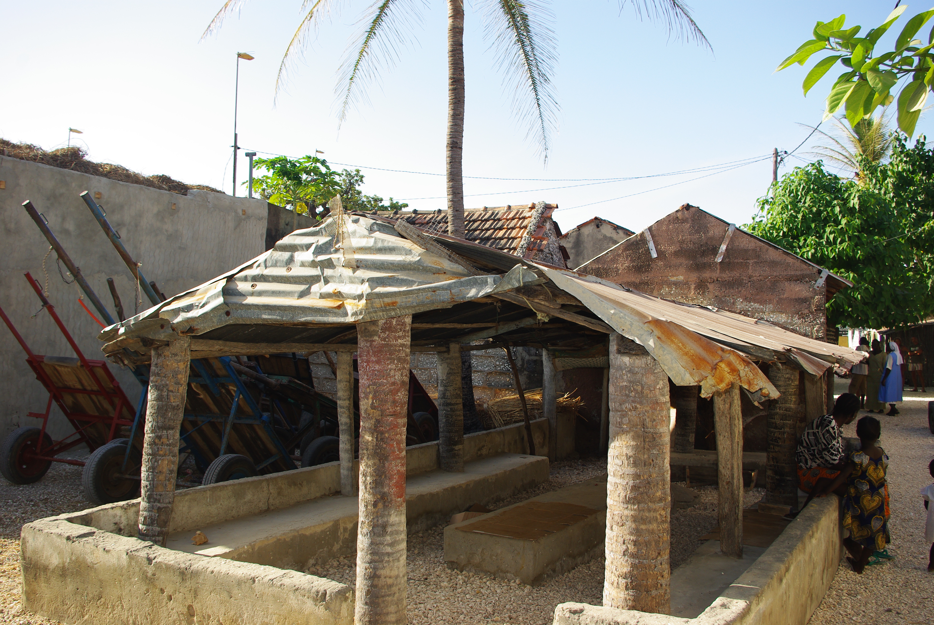 L’île est entièrement constituée de coquillages. A certains endroit, la couche atteint la hauteur de 8 mètres ! Impressionnant de déambuler sur ce sol qui crisse sous les pas ! Tout comme le cimetière de coquillages… Les tombes sont situées tout en haut de la butte…en coquillage. Le sol étincelle, rivalisant de brillance avec la mer. Du haut du cimetière, le paysage de mangrove s’étale à nos pieds . Nous découvrons les greniers à mil typiques du détroit du Siné Saloum : ceux-ci sont construits sur pilotis !
