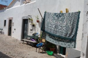 Nous aurons la chance d’apercevoir de belles scènes de vie : la mendiante sous le porche, l’atelier du céramiste, des azulezos en cours de restauration, un mariage et son cérémonial bien différent du notre, et, enfin, la serrure portugaise. Vous ne connaissez pas ? Pourtant, elle est simple, efficace et…à la portée de toutes les bourses ! Prenez une chaine et un cadenas. Passez la chaine dans des trous faits dans chaque battant de la porte, pour une porte à 2 vantaux, ou dans le trou de la porte et celui du volet de la fenêtre, cadenassez et …Le tour est joué !