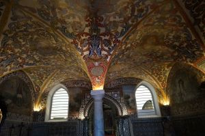 Dans la chapelle, le bleu de azulezos est comme rehaussé par l’or des retables. La lumière est fantastique, un peu magique…Alors…Sans bruit, je m’autorise 3 clichés à la volée…Le résultat est moyen mais on a bien rigolé !