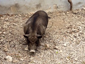 Nous ferons étape en Slovénie, vers Lubljana, à Sostro dans une magnifique cour d’auberge. Le patron élève des chèvres et des cochons noirs pour régaler les clients. Il est nécessaire hélas de réserver. Le voilà qui nous apporte une énorme branche de mirabellier couverte de fruits d’or. On prend ce qu’on veut et on jette tout le reste, bois compris, aux animaux ! Aussitôt dit, aussitôt fait !