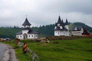 Une belle route de montagne aux virages en épingles à cheveux nous conduit à travers de magnifiques forêts au Col de Prislop (1416 métres). Chemin faisant, nous nous arrêtons vers un apiculteur qui tient un étal en bord de route. Nous échangeons tant bien que mal sur les diverses variétés de miel, ses difficultés car le climat est rude dans la montagne. Nous observerons les apiculteurs au travail tout au long de notre parcours du jour. Plus loin, c’est à la source d’eau minérale du Parc National des Munti Isi Apara Vitorul que nous remplissons nos bouteilles d’une eau cristalline et au goût délicat. Pour trouver la source, il faut avoir l’oeil. Elle est à peine signalée. Il s’agit d’un simple tuyau qui sort du talus. Il est équipé d’un goulot de bouteille en plastique pour faciliter le remplissage ! Encore une stupéfaction de plus dans cette Roumanie pleine de contraste. Stupeur d’autant plus grande, qu’au Col de Prislop, un gigantesque monastère flambant neuf est en cours de construction !