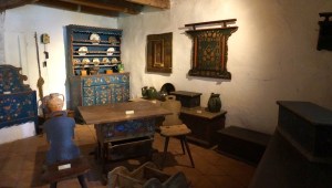dsc06045  A Prejmer, nous visitons une belle et originale église luthérienne fortifiée du XIII° siècle. L’enceinte fortifiée est large de 30 mètres. L’église tient la place centrale. Des échoppes et des logements occupent les galeries de l’enceinte sur quatre niveaux. Les logements ne sont, ni plus ni moins, que de minuscules cellules, une par famille, dans laquelle chacun s’entassait avec ses vivres en cas d’attaque. Chaque porte est numérotée et correspond à une famille. Le bétail et les charrettes étaient remisés en rez de chaussée.