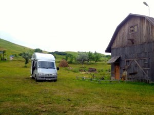 1 km a déjà été parcouru…Rien à l’horizon, si ce n’est des collines. Nous persistons dans notre direction ! Et nous voici enfin à bon port ! Nous arrivons dans un camping à la ferme, assez rustique, mais l’accueil est très chaleureux ! Je vous donne le point GPS : N45° 20′ 48 » E26° 42′ 34 ».