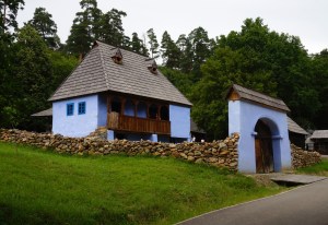 Le Musée Astra de  Sibiu est une sorte d’éco-musée en plein air, le plus grand de Roumanie, qui regroupe environ 400 bâtiments selon des thèmes précis : les moulins, l’industrie traditionnelle, les fermes…Tout ceci autour d’un superbe lac. Nous avons donc un bel aperçu de l’habitat traditionnel et pouvons photographier tranquillement les maisons qui jalonnent nos routes depuis quelques jours. Les maisons sont peintes de couleurs vives, une sorte de badigeon.