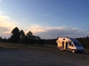 Nous voici quelque part au-dessus de Trieste, vers Bazovizza. Tout à l’heure, impossible de rejoindre le spot Park4night à cause de branches basses. Nous venions de traverser San Antonio del Bosco aux rues très étroites lorsque nous avons trouvé un petit parking/coin pique-nique . Nous y sommes donc restés un bon moment à faire le point, chercher…Aller voir à pied…Se dire que finalement…Pour une nuit …Ce n’est pas grave … À force de croiser les données Google Maps et Park4night… On s’est déplacé et là…On est bien ! En pleine nature et surtout à l’air …Malgré les 36,5° ! À la vôtre les amis !