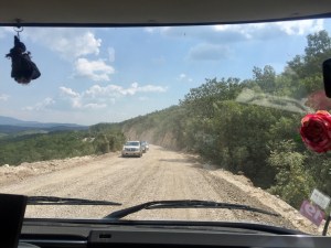 Plus loin au Monténégro, ce sont les travaux de la route principale qui nous occupent…Enfin…Façon de parler ! Heureusement notre Exsis a une bonne garde au sol et une protection moteur déjà testée en Afrique, en Russie et en Roumanie. Mais, il fait quoi celui-là avec son 4X4 ??? N’importe quoi ! Voilà un gars stoppé net devant une différence de niveau de 3 cm entre le goudron et la route en travaux !!! Pour un peu, on le percutait ! Heureusement que Jean-Paul a été plus attentif que moi. De rage, Jean-Paul le double ! Pas la peine d’avoir un 4X4 pour flipper devant une chaussée défoncée !!!