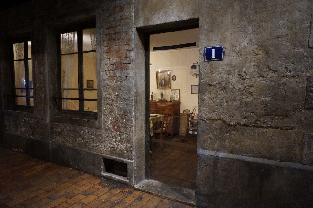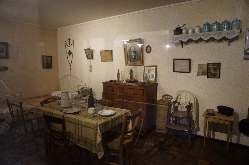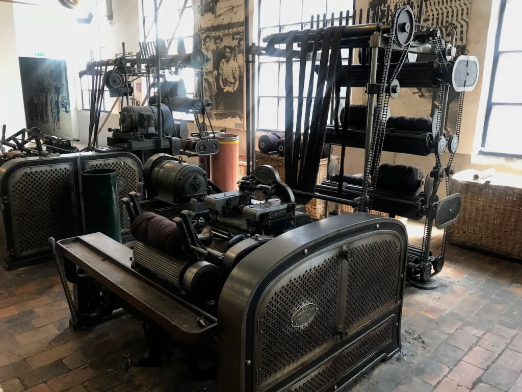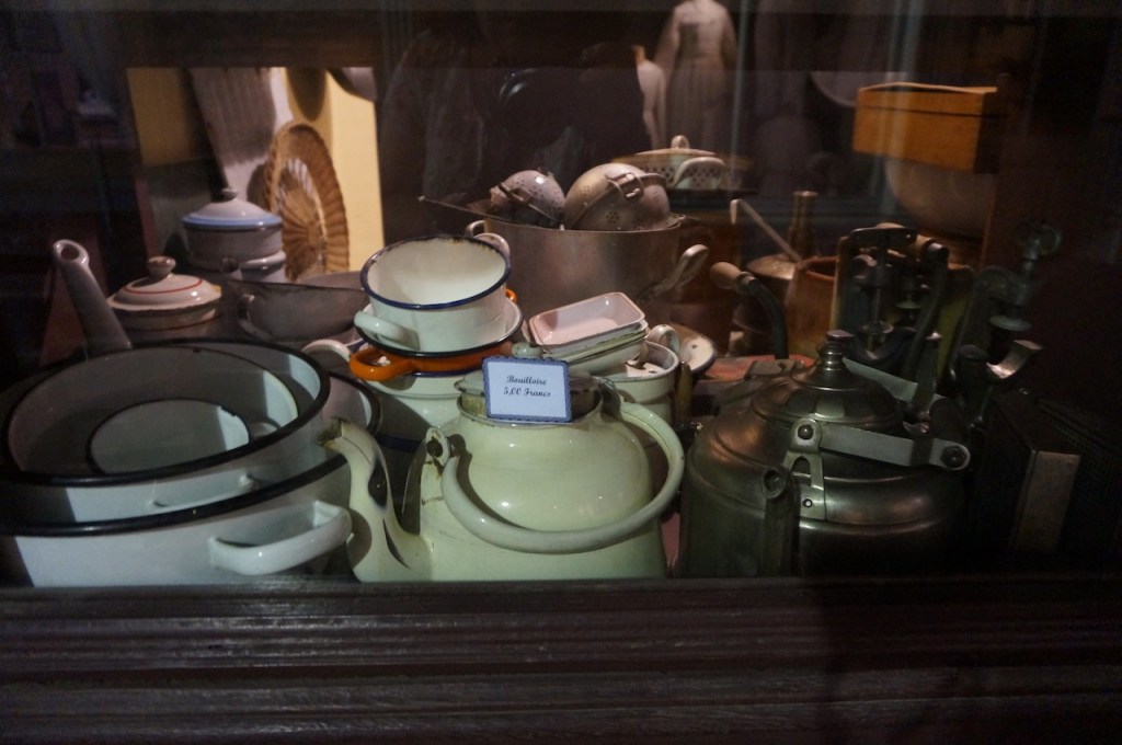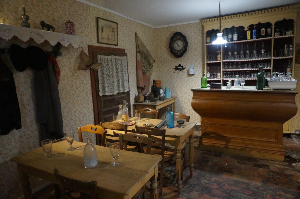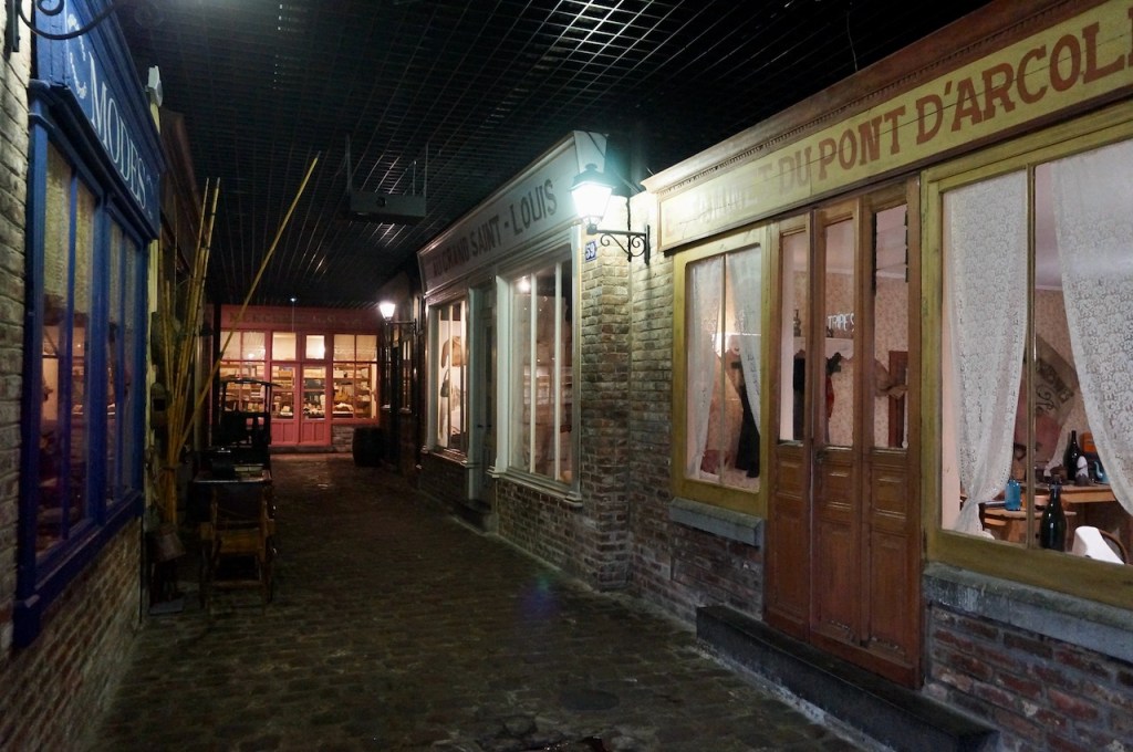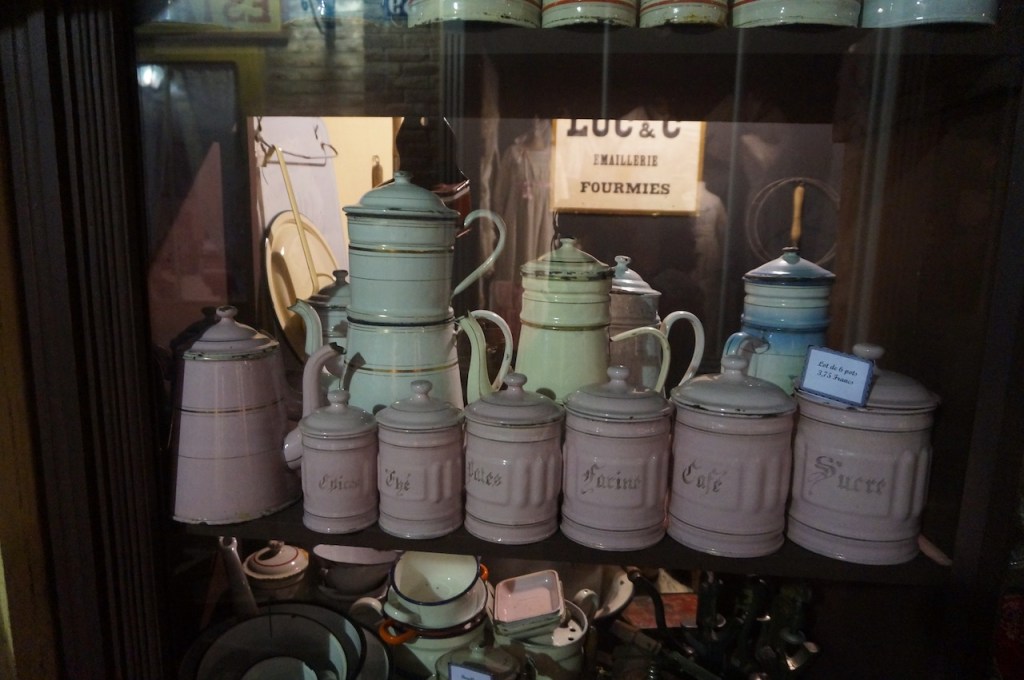 Nous découvrons les ateliers de tissage et confection à domicile, puis la reconstitution d’une rue de Fourmies. Nous aurions tant aimé nous assoir à la table de l’Estaminet, fouiller dans le bazar pêle-mêle ou discuter du montant de notre retraite au guichet de la Poste…Nostalgie !