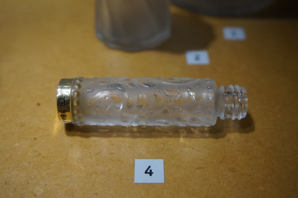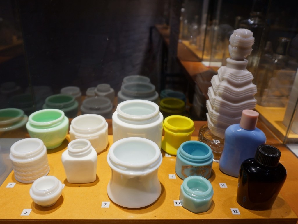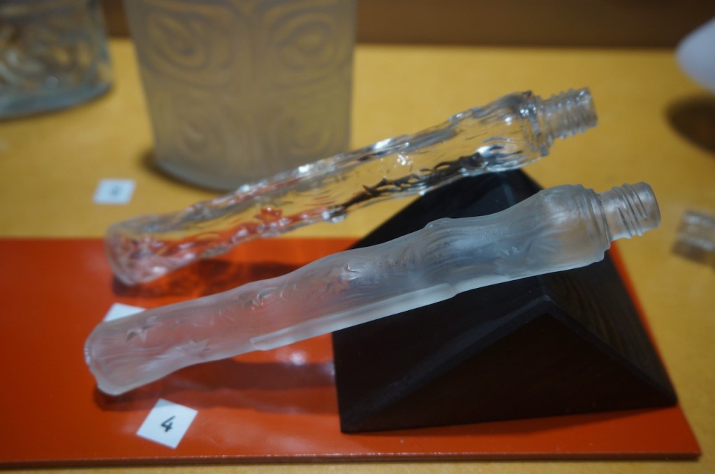 L’accueillant qui nous montre les plus belles pièces de la collection : flacons de parfum de luxe, bouchons, commandes particulières qui faisaient la renommée de la verrerie jusqu’en 1977, année de sa fermeture.