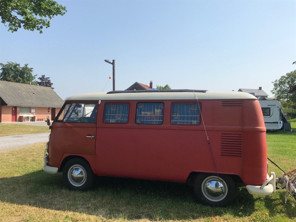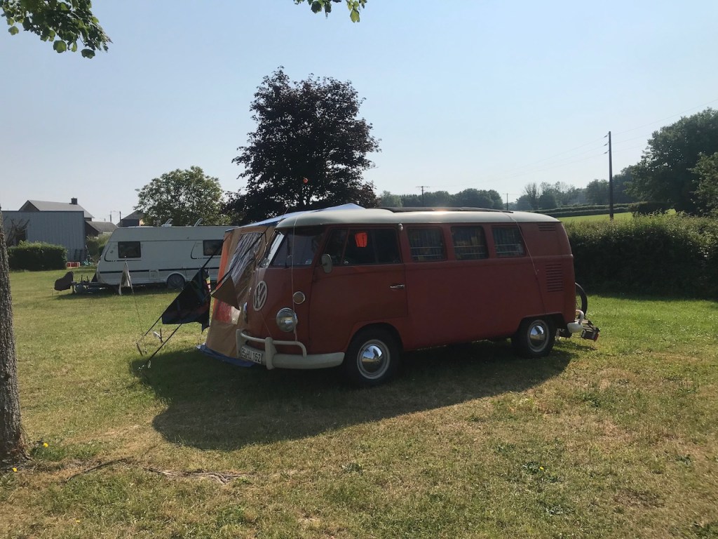 Notre étape pour quelques jours est un « camping de mon village » du réseau Camping-car Park, à Felleries. A peine sur notre emplacement, nous attaquons le grand ménage de la cellule de notre Exsis. A grand renfort d’huile de coude, tout y passe : cloisons, poste de pilotage, coins, recoins…Enfin sortis de cette poussière ! Et regardez,ce que nous découvert…Il est beau le combi !