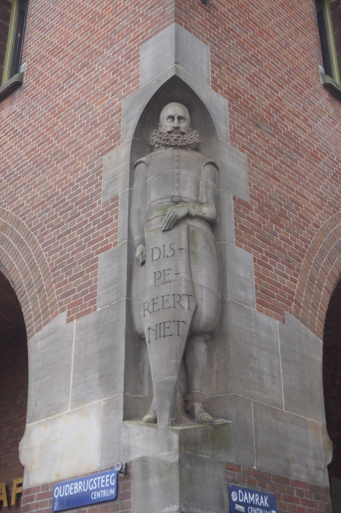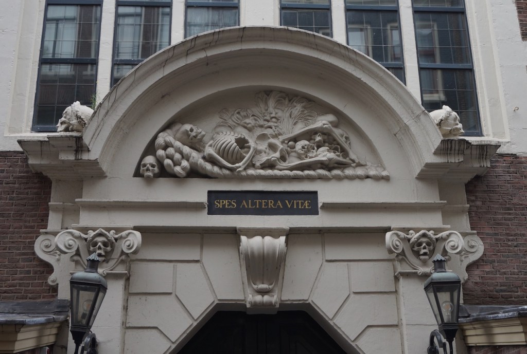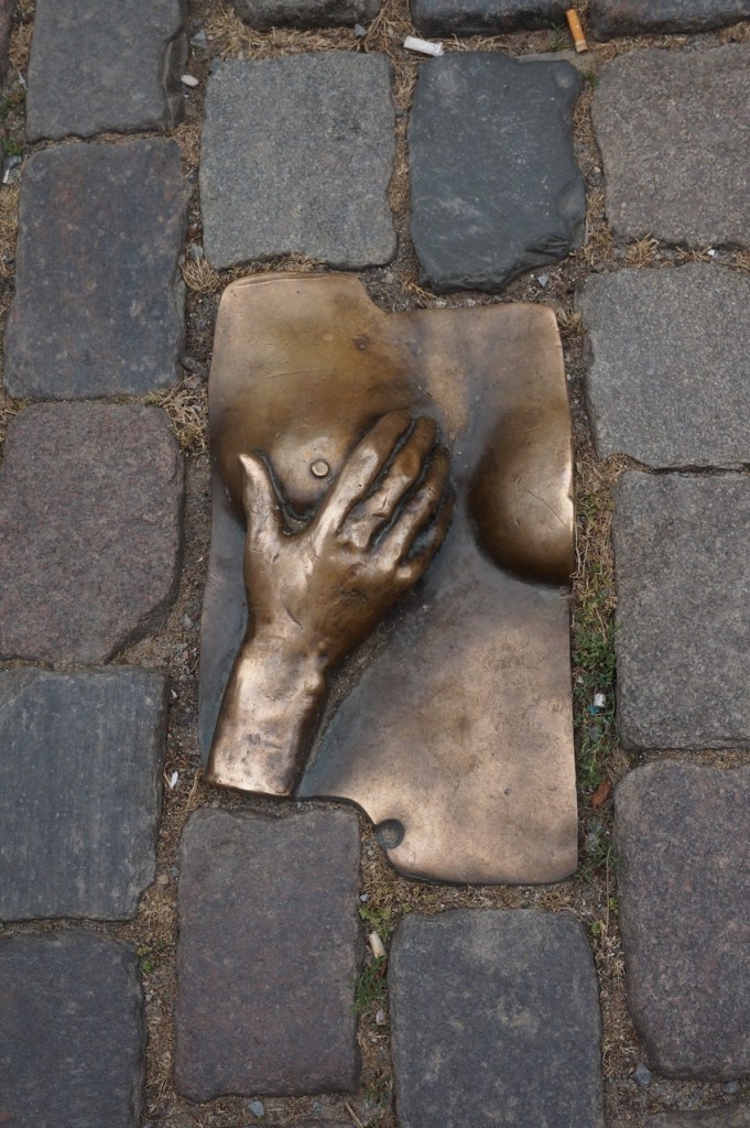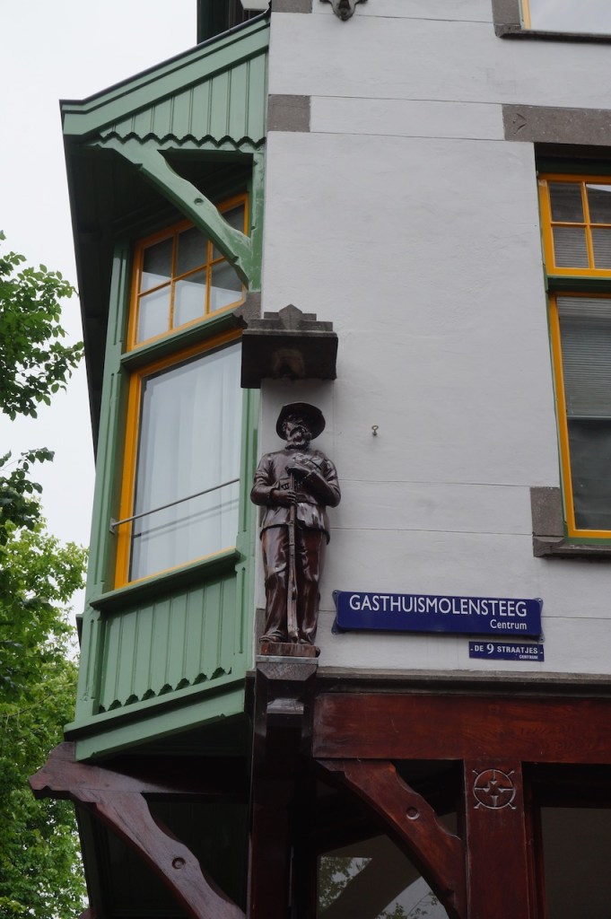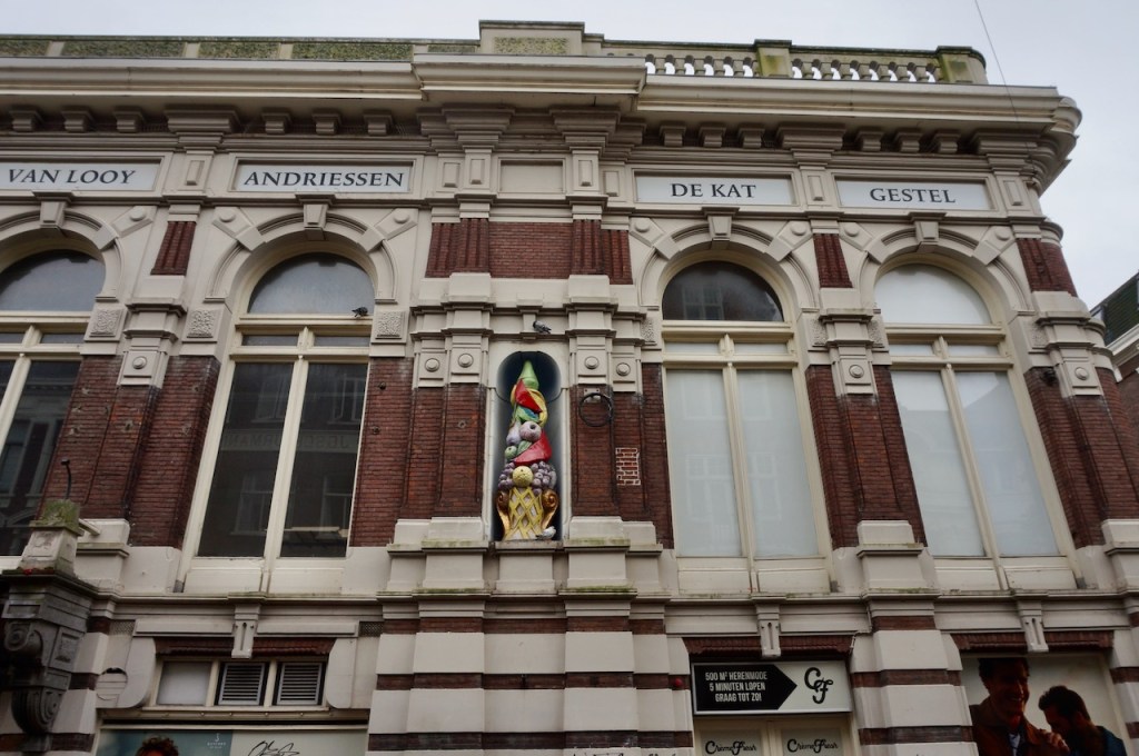 Nous photographions l’enseigne d’un bar et une œuvre d’art sulfureuse scellée dans les pavés près de Oude Kerk ! La municipalité a voulu l’enlever mais les habitants du quartier ont manifesté pour la garder. Ils ont obtenu gain de cause !