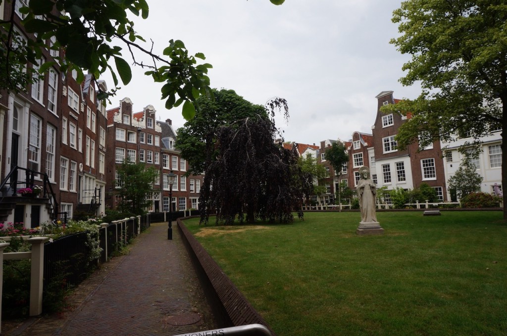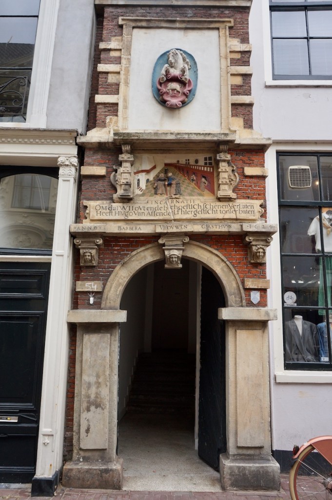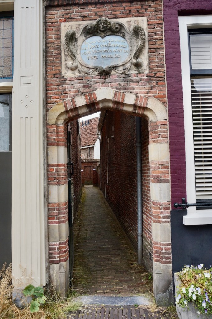 Presque par hasard, sur la Kruistraat, nous découvrons une maison de retraite du milieu du XVIIIème siècle. Nous empruntons une sorte de rue-couloir, une mini-rotonde et débouchons sur une cour intérieure autour de laquelle sont groupées des petites maisons, bien évidemment habitées. Les habitants tolèrent quelques incursions de touristes très discrets…Mais pas plus, la sérénité du lieu se devant d’être préservée !