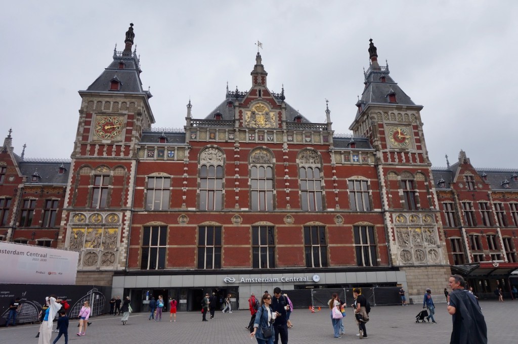 La gare Centraal Station est époustouflante ! Edifiée à la fin du XIXème siècle, elle repose sur 9 000 colonnes, plantées dans du sable, sur 3 îlots artificiels ! Y compris la décoration de sa façade en impose ! Centraal Station est la gare de la démesure !