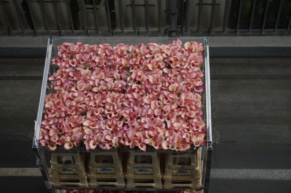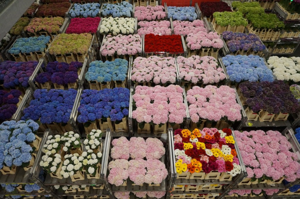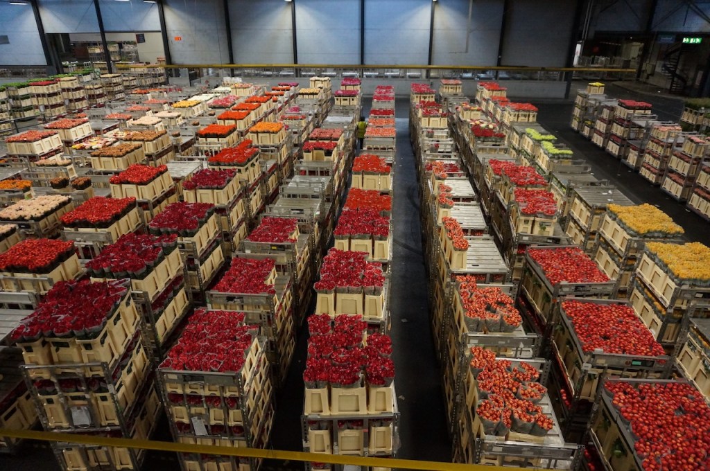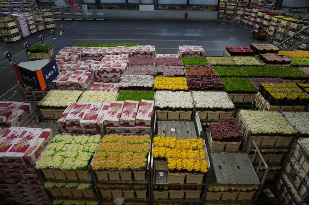 Ici, chaque matin, dès 4 heures, 46 millions de fleurs du monde entier, soit 23 000 plantes et fleurs différentes, arrivent pour être vendues aux enchères et repartir dans la matinée quelque part dans le monde entier. Le chiffre d’affaire journalier est de 22 millions d’euros, soit 5,6 milliards de chiffre d’affaire annuel !