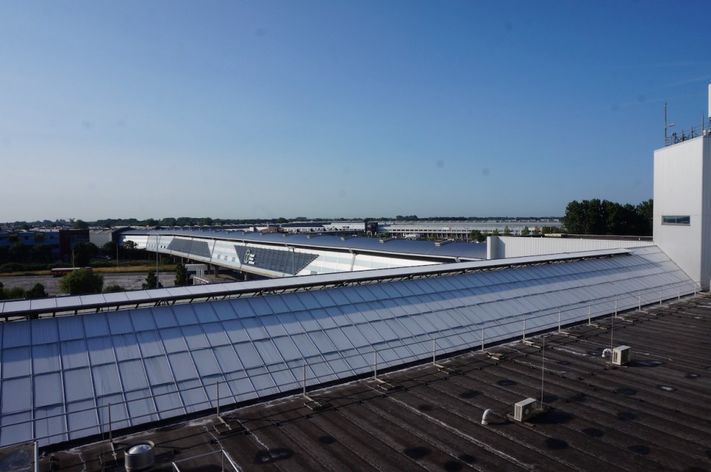 Le site couvre 1 732 769 m2, soit 250 terrains de football et nous découvrons son immensité depuis le toit terrasse sur lequel nous sommes garés.