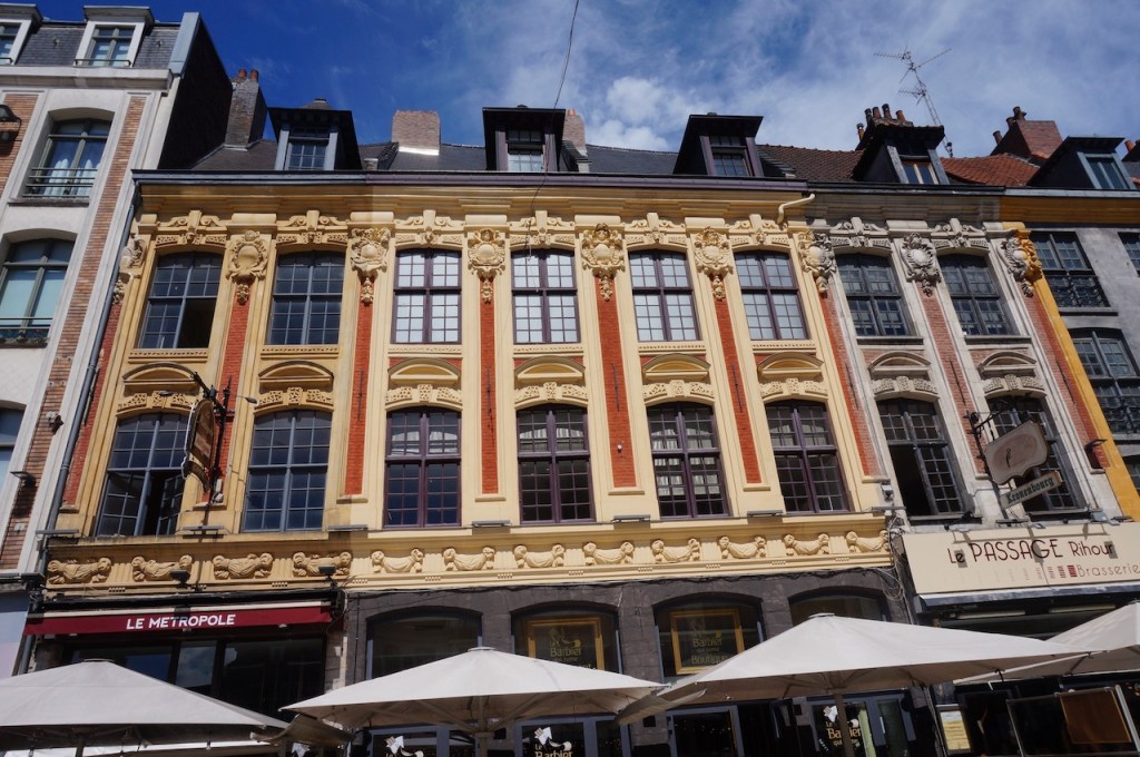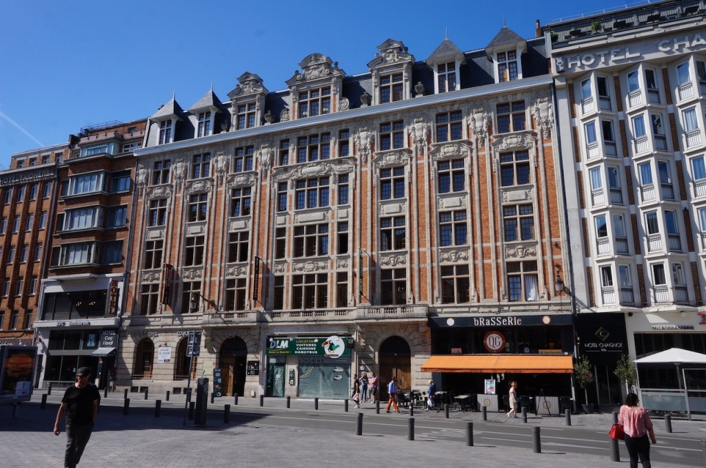 Autour de la place de la gare de Lille Flandres, les façades des hôtels rivalisent de décors architecturaux.