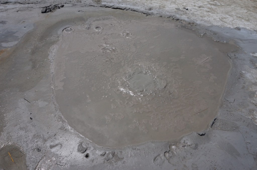 Rien ne pousse sur cette terre trop salée, argileuse, juste animée par les bulles des volcans formées par un gaz qui remontent des entrailles de la terre. La boue est froide et certains s’en enduisent pour ses propriétés curatives.