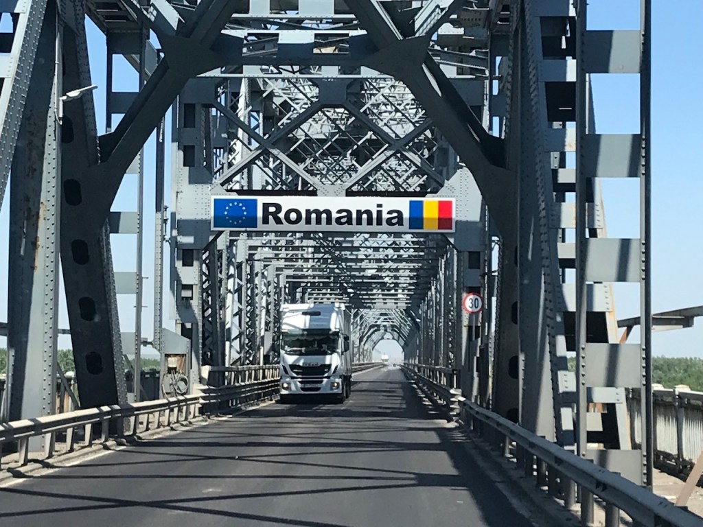 Après les dernières courses à Ruse pour terminer nos levas, nous voici sur le pont sur le Danube qui marque la frontière Bulgarie/Roumanie.