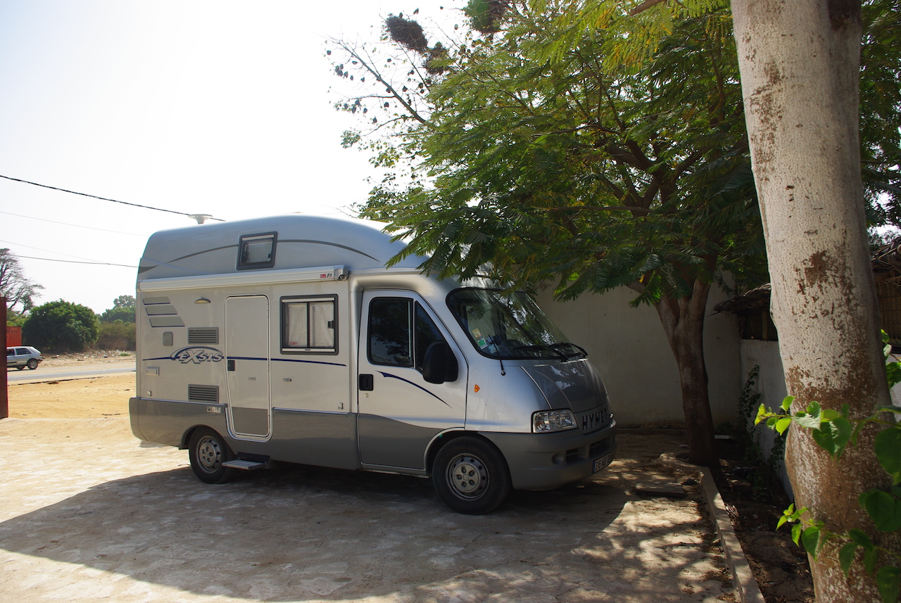 Nous décidons de stopper dans une auberge camping à Rusfique. Hélas, plus de possibilité de camper. La patronne nous envoie vers un camping à Mbao…Que nous ne trouverons jamais. De guerre lasse, nous cherchons des infos sur une hypothétique halte gardée vers Dakar. Le directeur d’un complexe touristique accepte de nous garder 2 nuits sur son parking clos contre 3000FCFA (4,60€) la nuit. Il nous propose même un taxi pour demain.