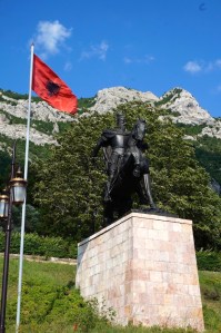 Nous avons donc rejoint Krujë et son camping à la ferme. Après un moment de détente bien mérité, nous visitons la citadelle. Construite au V° siècle, puis reconstruite au XIIIème par Charles d’Anjou (oui le nôtre!), elle a ensuite appartenu aux Ottomans. Skanderberg est le héros national ! Il a régné sur l’Albanie au XV éme siècle et Krjë était sa capitale. Les monuments glorifient ses batailles.