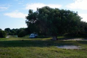 Nous trouvons, par pur hasard, un camping sans prétention où le gérant nous choisit la meilleure place, à l’ombre, au calme. Les cigales nous assourdissent. (camping Piccolo Paradiso : N 40°58’27.9’’ E 19°28’46.0’’)