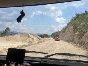 Plus loin au Monténégro, ce sont les travaux de la route principale qui nous occupent…Enfin…Façon de parler ! Heureusement notre Exsis a une bonne garde au sol et une protection moteur déjà testée en Afrique, en Russie et en Roumanie. Mais, il fait quoi celui-là avec son 4X4 ??? N’importe quoi ! Voilà un gars stoppé net devant une différence de niveau de 3 cm entre le goudron et la route en travaux !!! Pour un peu, on le percutait ! Heureusement que Jean-Paul a été plus attentif que moi. De rage, Jean-Paul le double ! Pas la peine d’avoir un 4X4 pour flipper devant une chaussée défoncée !!!