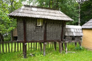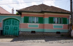 Le Musée Astra de Sibiu est une sorte d’éco-musée en plein air, le plus grand de Roumanie, qui regroupe environ 400 bâtiments selon des thèmes précis : les moulins, l’industrie traditionnelle, les fermes…Tout ceci autour d’un superbe lac. Nous avons donc un bel aperçu de l’habitat traditionnel et pouvons photographier tranquillement les maisons qui jalonnent nos routes depuis quelques jours. Les maisons sont peintes de couleurs vives, une sorte de badigeon.